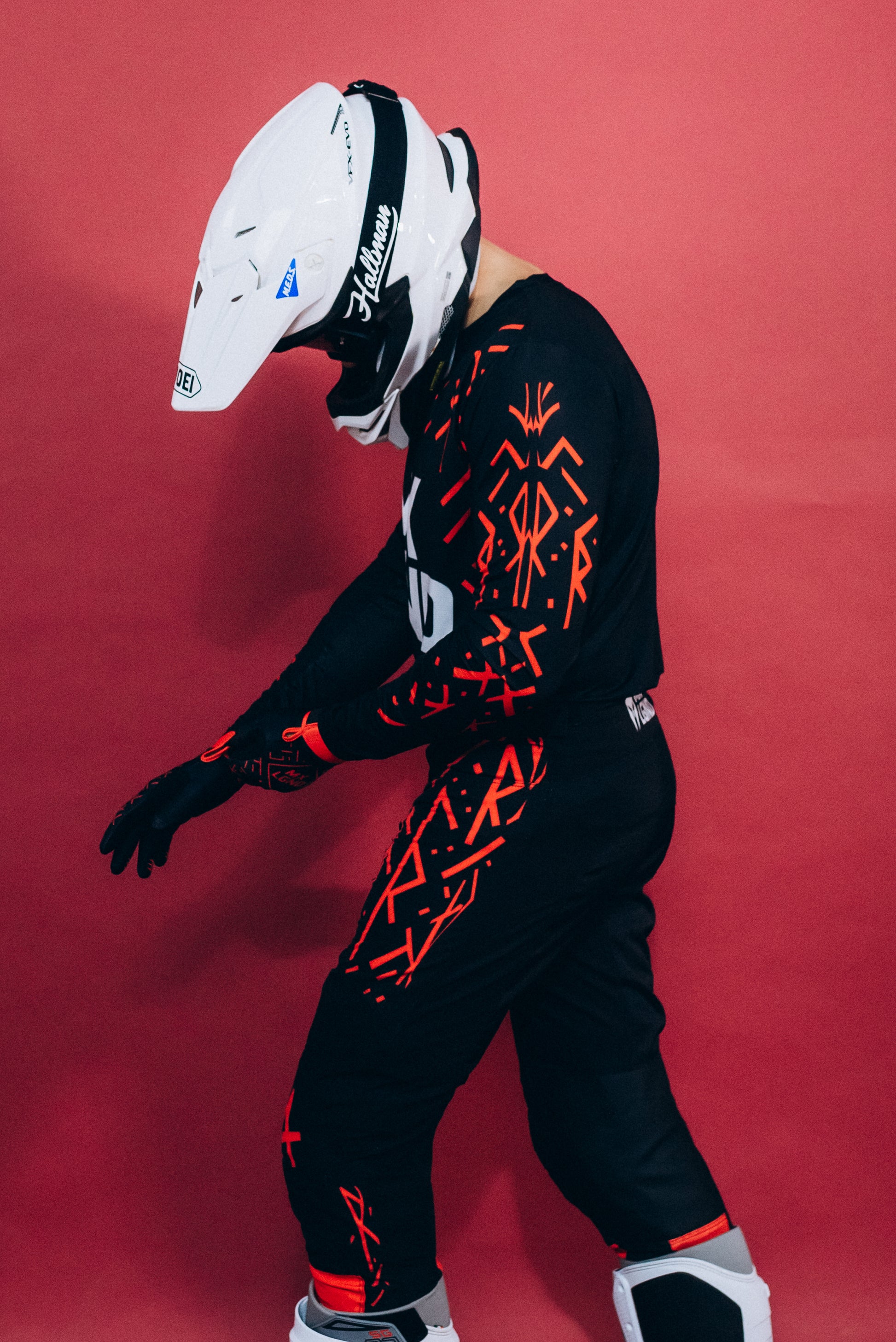 Forged in fire, the INFERNO CODE gear unleashes aggression and control. Red runes slash through black armor, representing raw power and fearless energy. Designed for those who never back off.