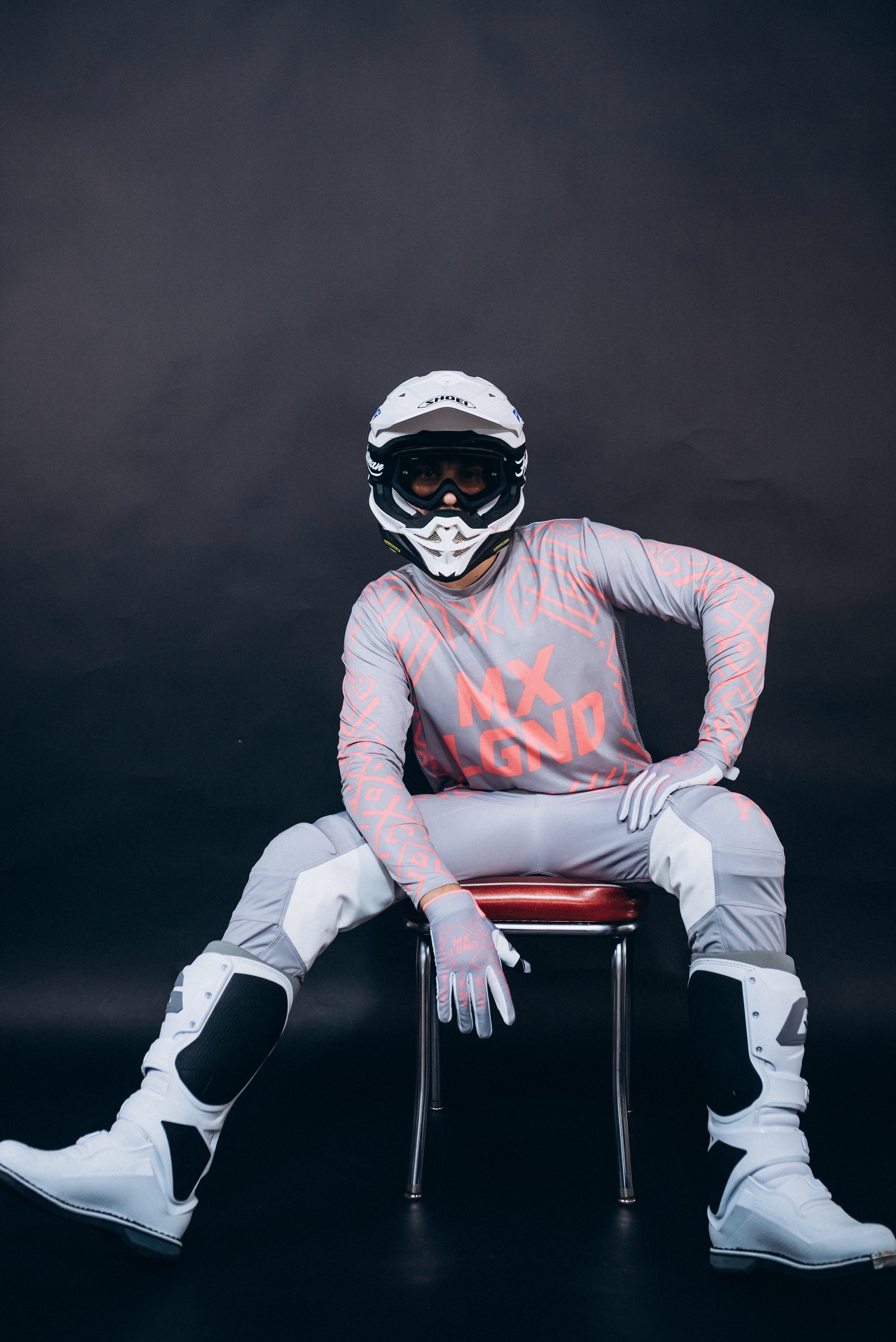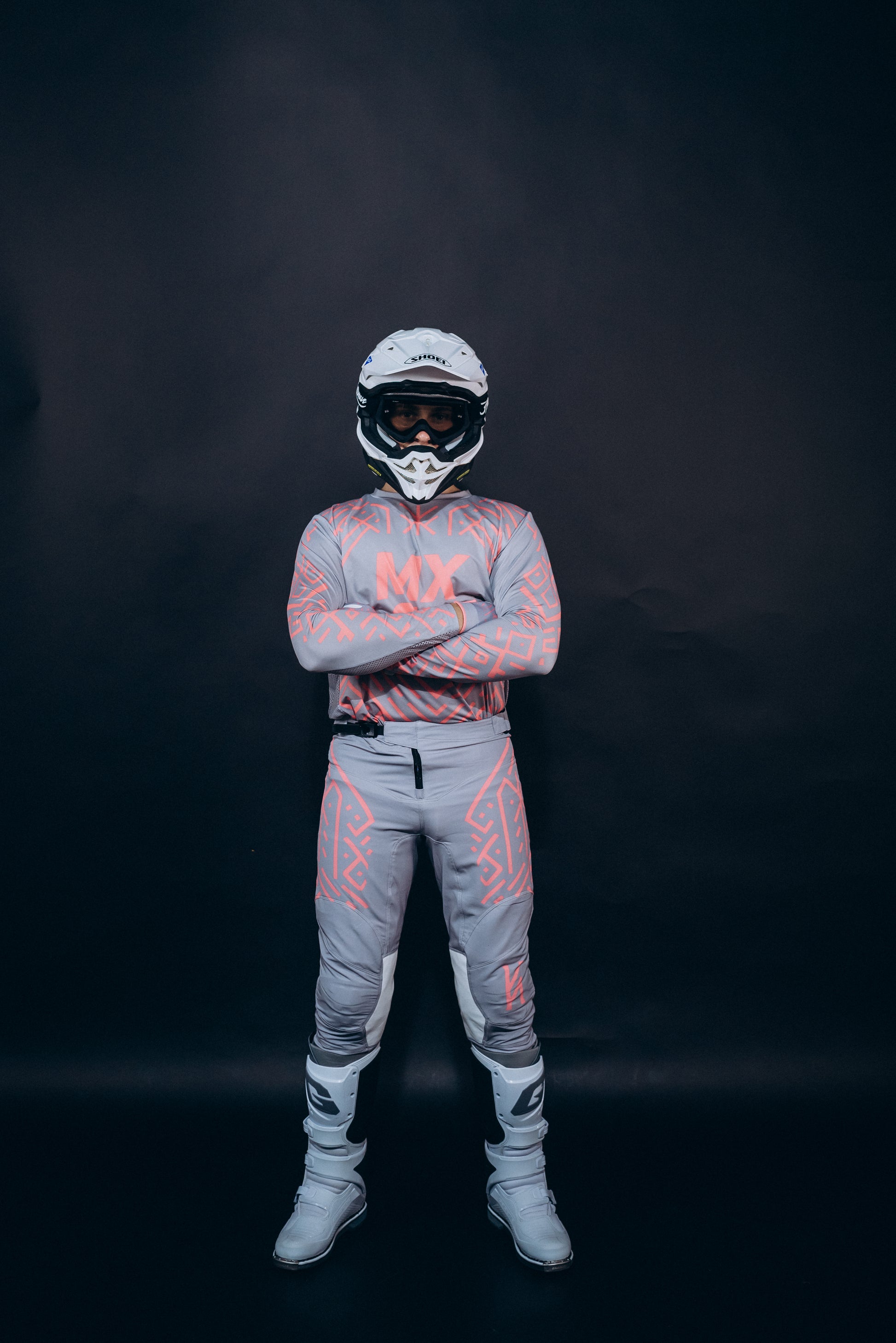Subtle strength meets elegance. VALKYRIE SPIRIT honors the riders who fight with heart. Grey tones ground the look, while soft pink runes radiate grace and power combined.
